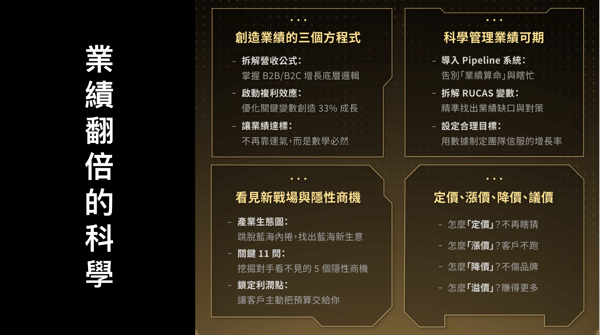 重點筆記分享MJ 給實業家的 2026 年的六個建議:1. 手留 25% 現金(接下來五年,活著,就是一種偉大的存在) 2. 開始學習併購,2026-2030 是中小型企業最好成長的時候 3. 培養左右手,接管買下的企業 4. 控制負債比率(銀行雨天收傘) 5. 不要輕易擴增產能,尤其是跟中國競爭的商品 6. 有毒蘋果(沒有利潤)不要吃 關於併購學習:https://mapect.com/ MJ定價6個思考點:1.你的四種定位 2.競品價格(產品定位、品牌定位、公司定位、產業定位) 3.成本結構 4.客戶感知的價值 5.生命週期LTV 6.可服務的產能需求量 傳產朋友請稱呼自己是基礎工業,不是傳產。 卡比筆記分享:為什麼低價沒能稱霸世界? MJ 老師直播精華:定價的心理戰與護城河 很多人以為「定價」是一道算式:成本 + 利潤 = 價格。 但在這場「捲到不行」的市場裡,如果你只會用數字定價,市場很快就會用現實教你做人。 真正的高手知道:客戶的主觀感受,才是你最強的護城河。 1️⃣ 客戶買的從來不是「產品」,而是「方案」 為什麼中國超低價產品沒能打爆所有品類?因為客戶決策時,買的是: > 「解決問題的方法」+「得到的價值感(情緒、身分、安心感)」 > 低價只能吸引追求「性價比」的理性,卻無法填補「情緒價值」的缺口。 2️⃣ 拆解客戶的決策黑盒子:系統 1 & 系統 2 定價不是訂一個數字,而是設計一個能同時通過兩套系統檢驗的「答案」: * 系統一(感性直覺): 他看的是品質、品牌知名度、社會地位。拿著你的產品,他會不會覺得更有面子?被照顧得更體面? * 系統二(理性思考): 他算的是功能夠不夠用?有沒有替代方案?這筆錢花得值不值? 感性決定行動,理性用來合理化行動。 3️⃣ 定價基本邏輯:價值獲取 (Capturing) × 價值創造 (Creation) 別再用「成本 × 利潤%」來定價,那叫「做白工」。 * 價值獲取(讓客戶覺得你值): 透過稀缺性、口碑推薦、品牌效應、服務品質、外型設計等「槓桿」,放大客戶對益處(Benefit)的感知。 * 價值創造(你實際的投入): 研發、模具、廣告、料工費等。 * 【利潤空間】: 就是這兩者之間的「感知差距」。你不是在跟對手比誰更便宜,是在比誰更會「造值」。 4️⃣ 從「賣什麼」轉向「客戶得到什麼」 定價的起點是問自己:客戶跟你買的 Benefit 是什麼? 是更省事?更安心?更被理解?還是更像「他想成為的那個人」? 當益處說得夠清楚,價格就不再是阻力,而是合理的代價。 5️⃣ 最強武功:把客戶的答案變成你的素材 做生意最怕的不是被拒絕,而是「死得不明不白」。 MJ 老師提醒:帶不回訂單,也要帶回「問題」! 詢問老客戶這 5 件事,就是你下一輪產品升級、精準定位的彈藥: * 最喜歡我們什麼?(確認你的護城河) * 最討厭我們什麼?(找出你的漏水點) * 如果你是老闆,你會改什麼?(挖掘潛在商機) * 你會用什麼關鍵字形容我們?(找出品牌原力) * 你用我們解決了什麼問題?(確認真實價值) 能把客戶的「主觀感受」變成「可控系統」的人,才擁有真正的定價權。 你是想去跟市場比誰更廉價?還是想去比誰更懂客戶、更會造值、更會講故事。 📢優惠活動通知超級業務力|2026必學商業課 🏆業界首創「財務 X 業務X國際觀」的獲利銷售系統!🏆台灣線上課程營收紀錄保持人 MJ 最新力作! 1️⃣ 人生最強價速器 » 懂人心+同視野+能佈局,從「賣東西」升級為「談生意」,掌握推動決策的商業操盤能力 2️⃣ 數字力 × 業務力 » 用杜邦方程式、CAC 與 LTV 精準決策,不只拼成交,也要能創造真實獲利! 3️⃣ MJ 獨家銷售飛輪 » 系統性打造可複製的成交引擎,讓業績具備穩定成長的慣性 4️⃣ 全產業銷售地圖 » 將多年輔導百業、橫跨國際市場的經驗,整理成六大銷售階段的實戰工具包 5️⃣ 賦能團隊銷售文化 » 告別單兵獨鬥,透過 K 值激勵與戰情室管理,打造具備獲利共識的「全員銷售」戰隊 👉 結帳輸入折扣碼「anton600」再折600元!